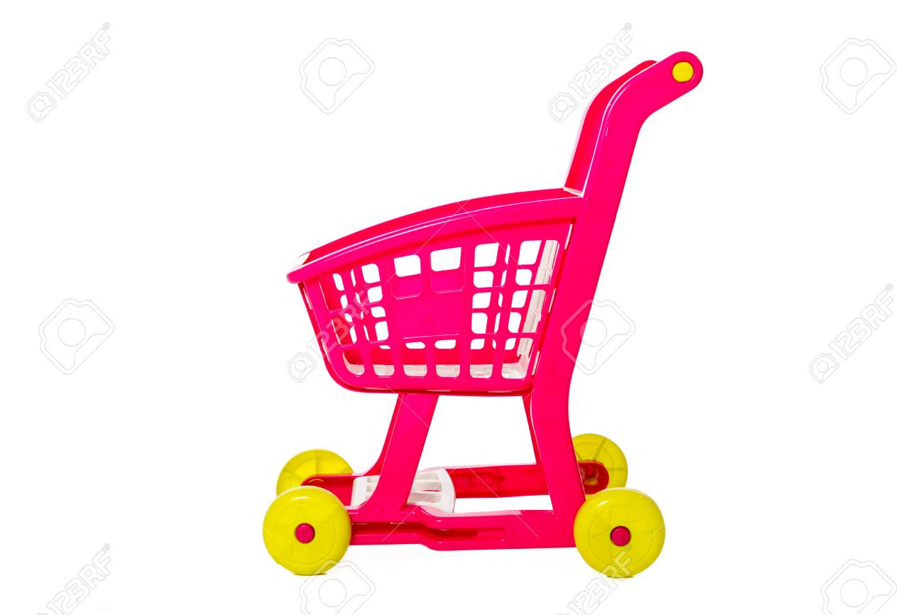 Spielzeug Einkaufswagen Freisteller Auf Weissem Hintergrund