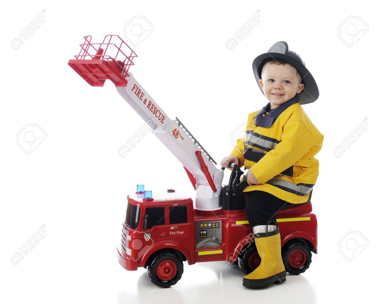 Kleinkind Kind Spielt Mit Feuer Lkw Auto Spielzeug Stockfoto