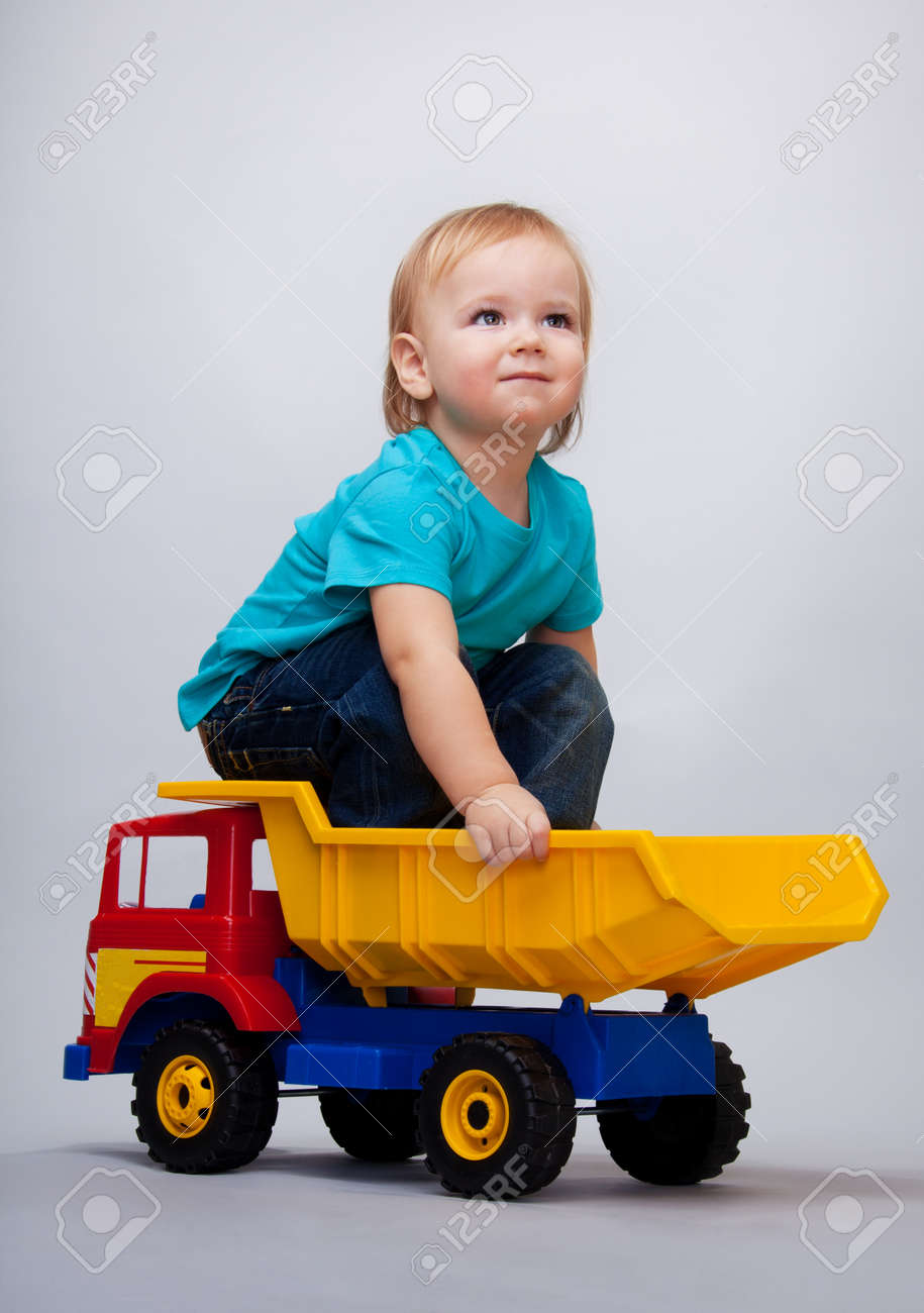 Kleinkind Baby Junge Kleinkind Mit Grossen Spielzeug Auto Lkw