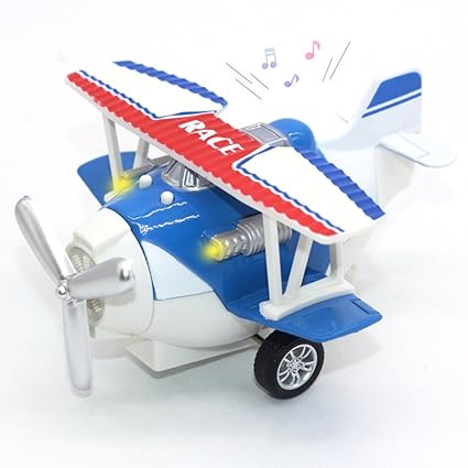 Joy Fun Spielzeug Fur 3 8 Jahre Jungen Druckguss Flugzeug Spielzeug Doppeldecker Fahrzeuge Modellflugzeug Mit Licht Und Ton Blau