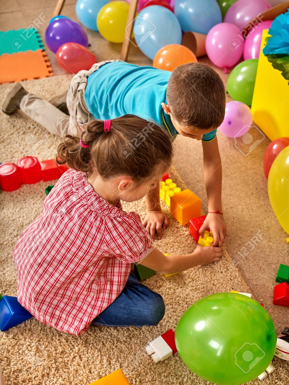 Kinder Bausteine Im Kindergarten Gruppe Kinder Spielen