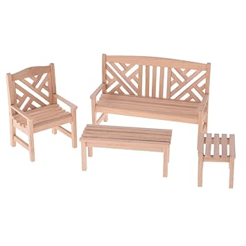 D Dolity Miniature Gartenmobel Holztisch Schemel Gartenbank