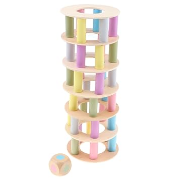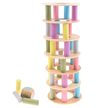 Homyl Bunte Balancier Holzturm Stapelspiel Konzentrationsspiel Aus Holz Motorikspielzeug Mit Wurfel Lernspielzeug Fur Kinder Ab 3 Jahre Alt