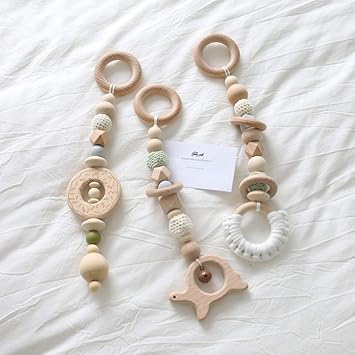 X3 Babys Holz Silikon Play Gym Spielzeug Kinderwagen
