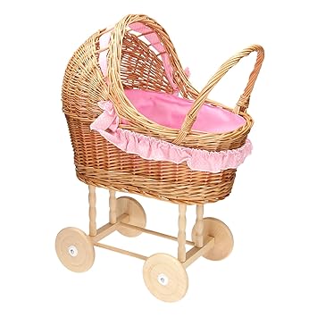 Naturholz Shop Rattan Korb Nostalgie Kinder Puppenwagen Holzpuppenwagen Spielzeug Holz Weide Inkl Decke Kissen Rot Kl Herz