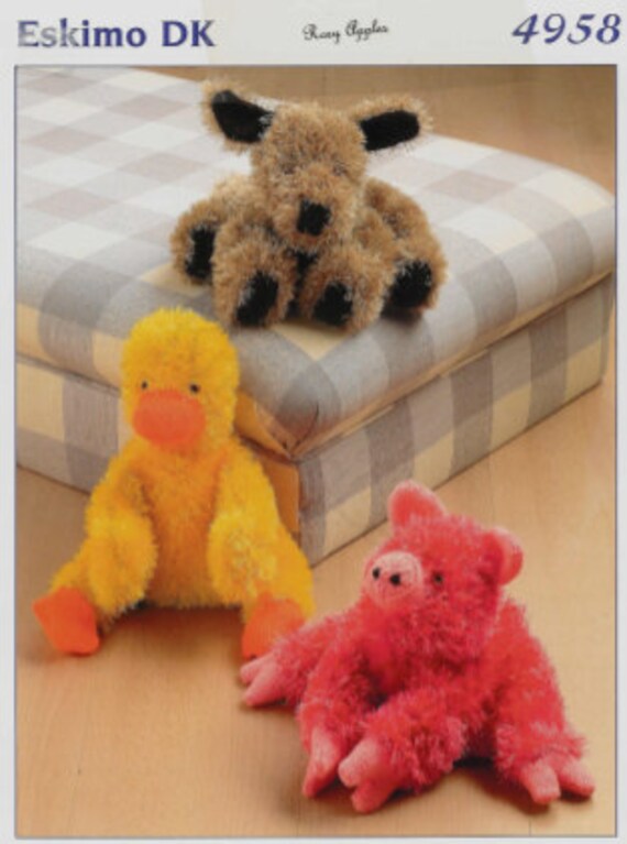 Stricken Sie Hund Schwein Und Ente Spielzeug Pluschtier Spielzeug Ohhhbabybaby Vintage Muster Sofortigen Download