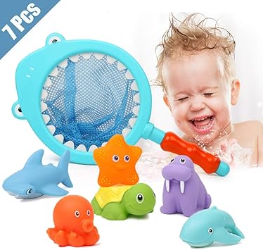 Lehoo Castle Badespielzeug Baby Ab 1 Jahr Badewanne Spielzeug Kinder Badespielzeug Mit Fischernetz 7pcs Ozean Tier Wasserspielzeug Kinder