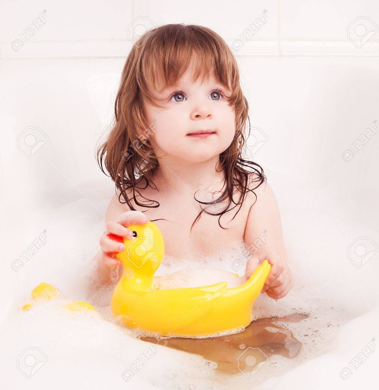 Kleinkind Mit Spielzeug In Der Badewanne Baden Stockfoto