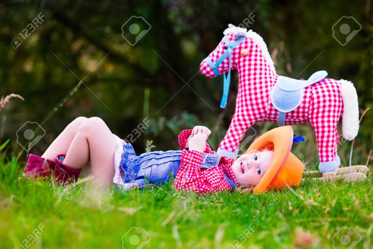 Madchen Das Ihr Angefulltes Spielzeug Pferd Uberwacht
