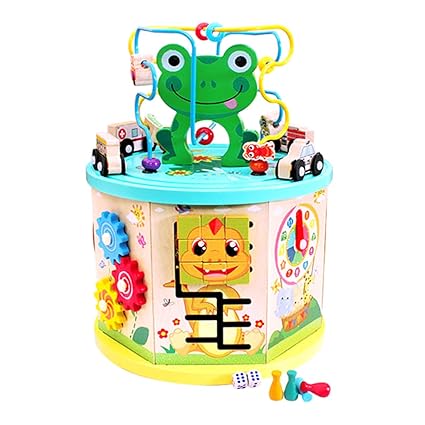 Matuke Motorikwurfel Aus Holz 7 In 1 Kinder Mathe Spielzeug Holzspielzeug Mit Motorikschleife Hammerspiel Und Lernuhr Lernspielzeugs Fur Kinder Ab