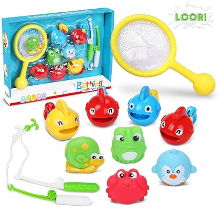 Loori Badewannenspielzeug Baby 11tlg Badespielzeug Wasserspielzeug Mit 4 Spray Wasser Schwimmen Und 7 Spielzeug Zum Angeln Fur Baby Kinder Ab 6