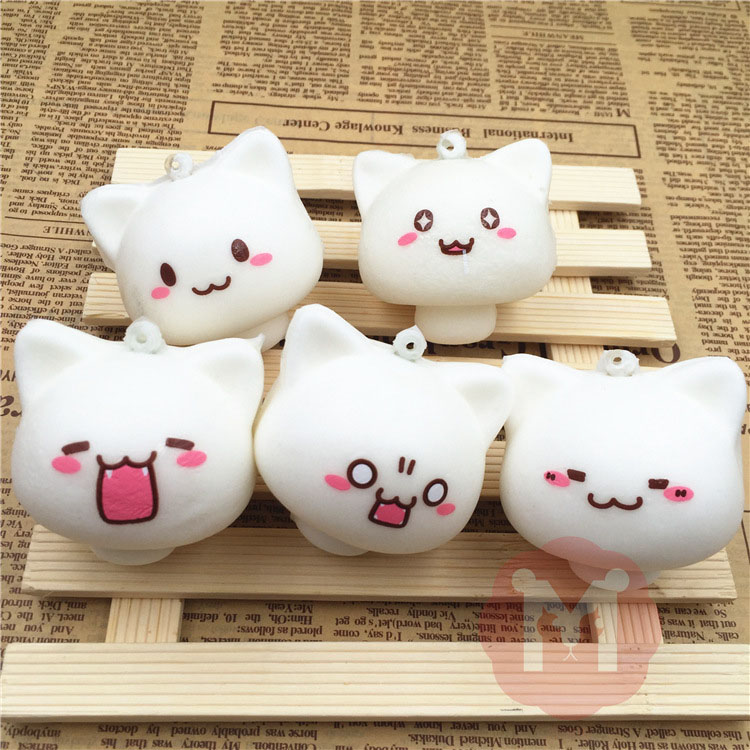 Squishy Spielzeug Pilz Katze Kawaii Cartoon Cute Face Dekor Tasche Handy Riemen