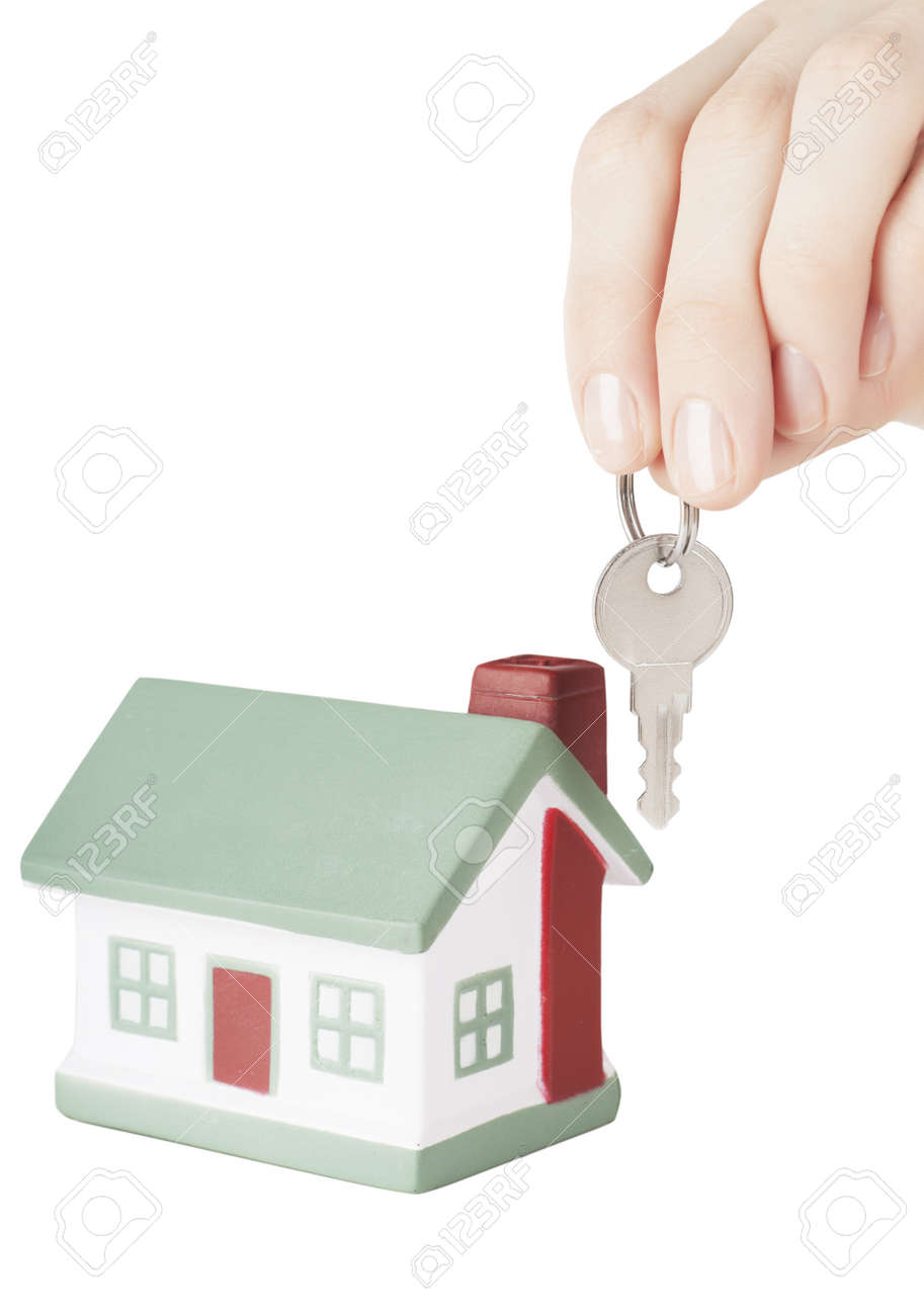Schlusselring Schlussel Und Spielzeug Haus Weisstextfreiraum