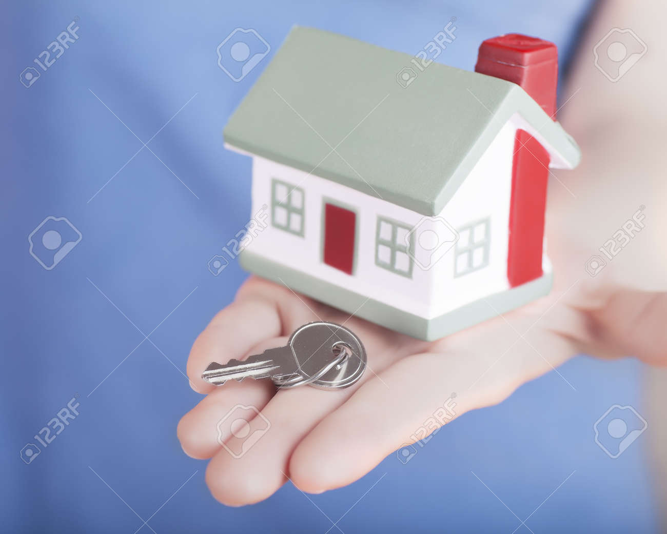 Spielzeughaus Und Schlussel Nahern Sich Unscharfen Paaren