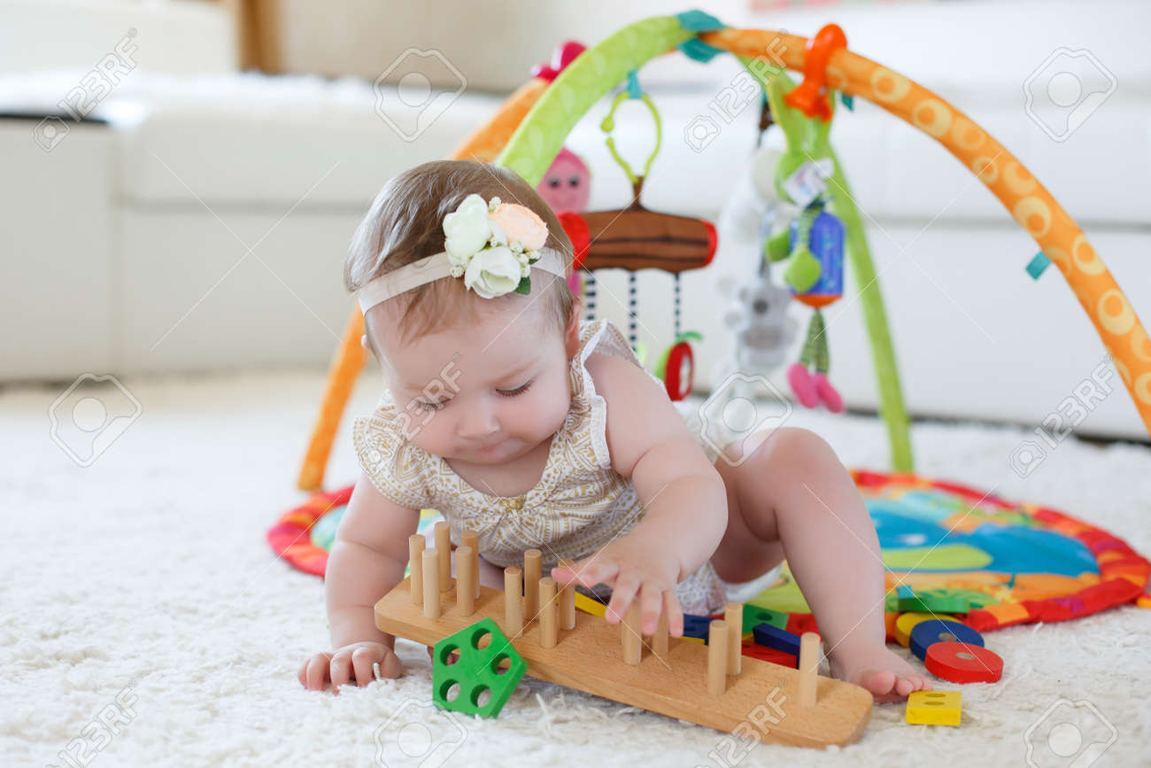 Kleines Baby Spielen Mit Spielzeug Zu Hause Glucklich Es