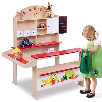 Costway Kaufladen Kinder Kaufmannsladen Holz Kinderkaufladen Einkaufsladen Verkaufsstand Marktstand Mit Tafel
