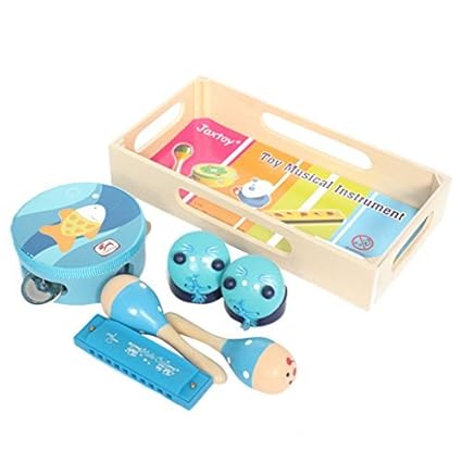 Happycherry 4 In 1 Baby Kleinkind Junge Holz Musikinstrumente Spielzeug Set Blau