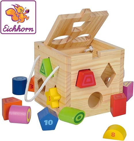 Eichhorn 100002092 Steckwurfel Aus Holz 13 Teilig Holz Natur Bunt 14 5 X 14 5 X 14 5 Cm Spielwurfel Motorik