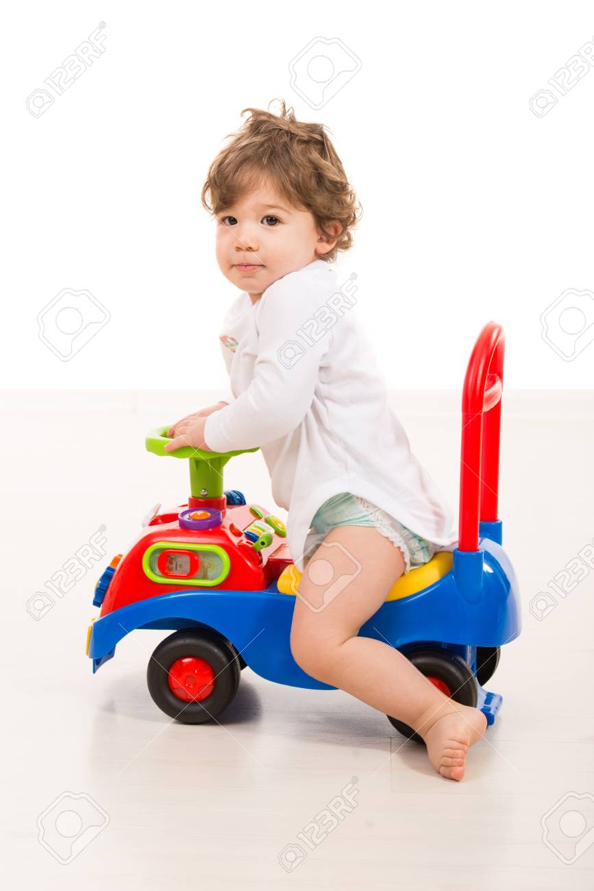 Kleiner Junge Auf Einem Spielzeug Kleinkind Stockfoto Bild
