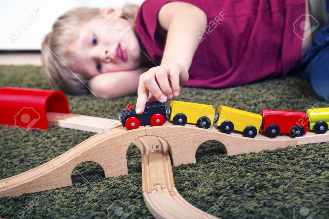 Junge Spielen Spielzeug Daycare Holzerner Zug Bauen