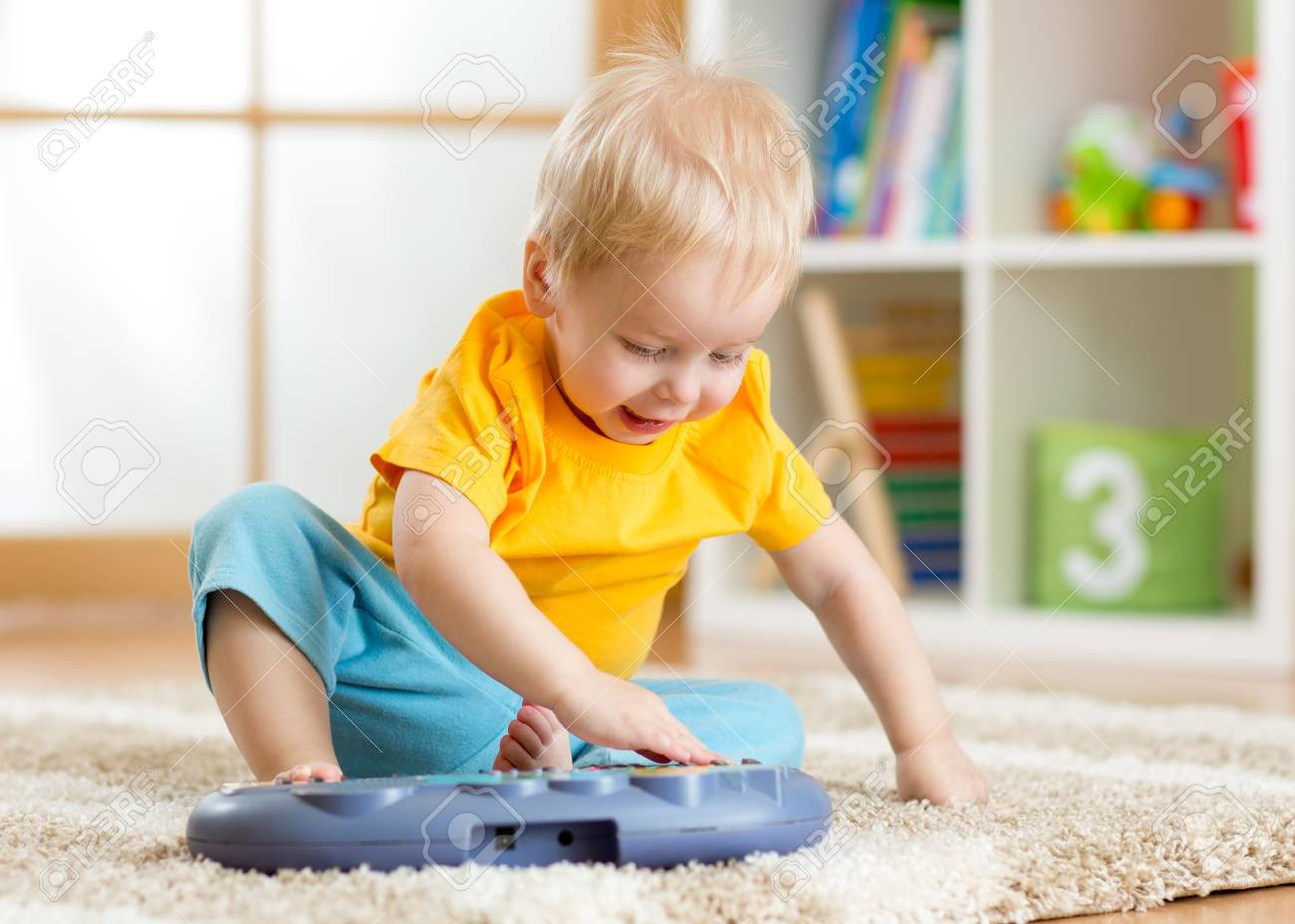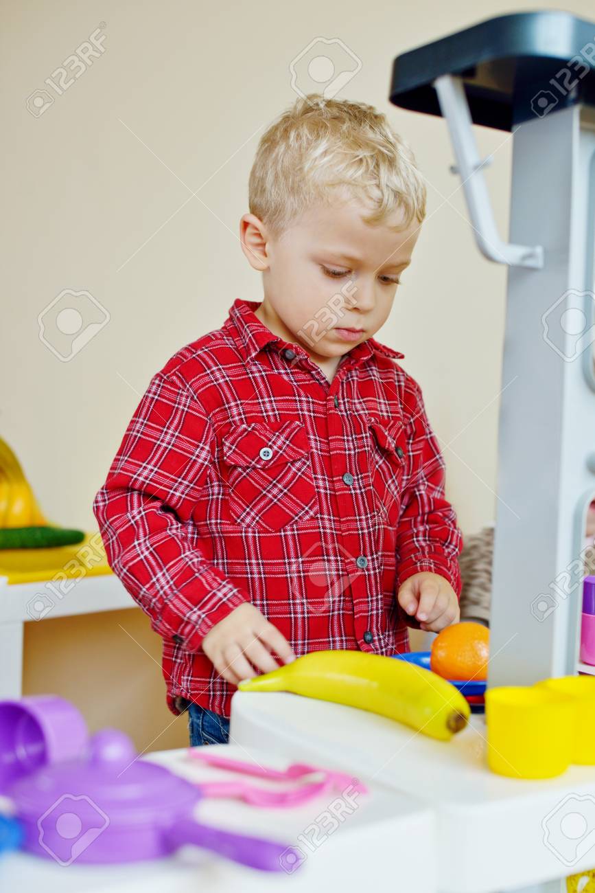 Kind Junge Kleinkind Spielt Mit Spielzeug Drinnen