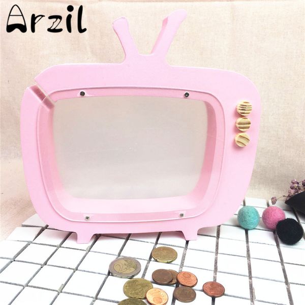 Grosshandel Ins Neuheit Tv Form Einsparung Topf Holz Aufbewahrungsbox Halter Munzen Spardose Desktop Organizer Home Shop Dekoration Kinder Spielzeug