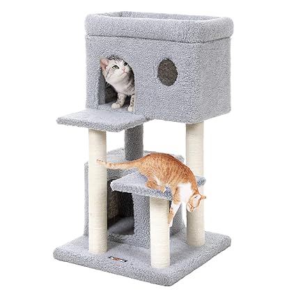 Feandrea Kratzbaum 85 Cm Mittelgrosser Katzenkratzbaum Mit Gepolsterter Liegeflache Und 2 Kuschelhohlen Katzenbaum Aus Fleece Sisalstamme Fur Junge