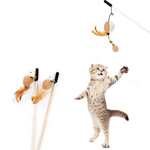 Us 1 52 15 Off Haustier Katze Spielzeug Lustige Holz Stick Baumeln Maus Ball Mit Feder Interaktive Katze Spielen Elastische Seil Spielzeug In