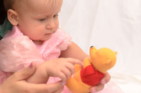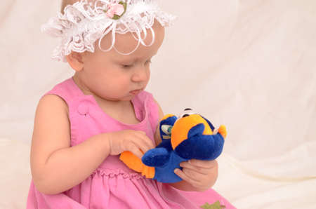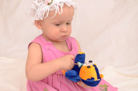 Einjahriges Madchen Sitzen Und Halten Eine Spielzeug