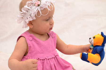 Ein Jahr Altes Baby Madchen Unter Ihrem Spielzeug Stockfoto