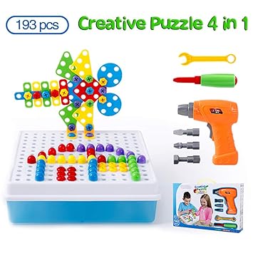 Akokie 2d 3d 223pcs Puzzle Mosaik Spiel Akkuschrauber Padagogisch Kreativ Spielzeug Kinder Werkzeugkoffer Ab 3 Jahre Fur Jungen Madchen
