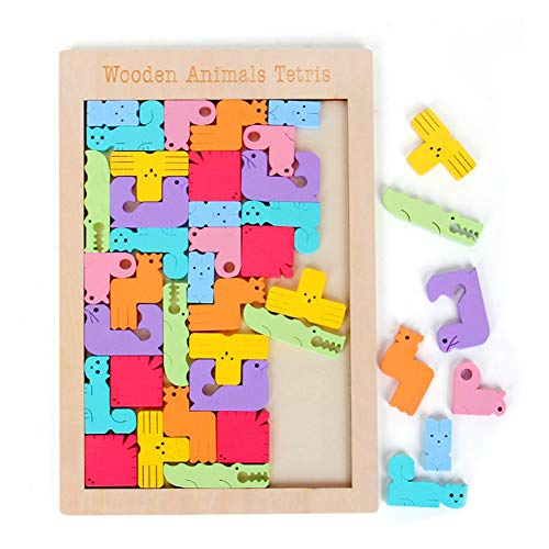 Hahaone Tier Tetris Holzpuzzle Spielzeug Ab 3 Jahren Jungen Tetris Tangram Holzpuzzles Lernspiele Ab 3 4 5 6 Jahre Geburtstag Junge Geschenk Puzzle
