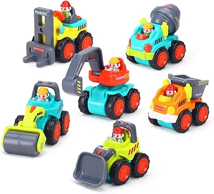 Gostock Kunststoff Spielzeugauto 6 Baufahrzeuge In Einem Set Lkw Spielzeug Fur Kinder Ab 18 Monate Bulldozer Zementmischer Kipper Gabelstapler