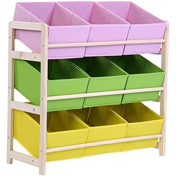 Songmics Kinderzimmerregal Spielzeug Organizer Bucherregal Fur Kinder Mit 9 Aufbewahrungsboxen Aus Fleece Kinderzimmer Schule Kindergarten 62 5
