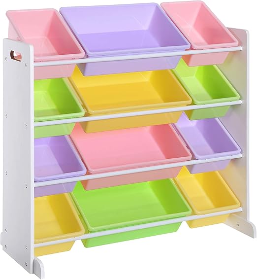 Songmics Kinderzimmerregal Spielzeug Organizer Mit 12 Herausnehmbaren Aufbewahrungsboxen Aus Kunststoff Spielzeug Und Bucherregal Furs
