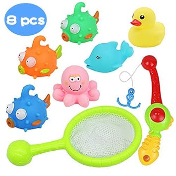 Aokebeey 7 Stuck Badespielzeug Fur Baby Badewannenspielzeug Mit Fischernetz Schwimmenden Tieren Badewanne Babyspielzeug Ozean Spruhwasser