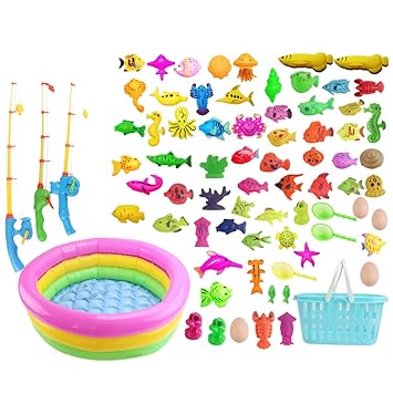 Phynedi Spielzeug Magnet Angelspiel 80 Tlg Angelspiel Badewanne Badespielzeug Meerestieren Strandspielzeug Mit Schwimmbad Fur Kinder Ab 3 Jahre