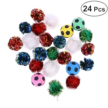 Popetpop 24 Stuck Katzen Ball Spielzeug Glitzer Pompons