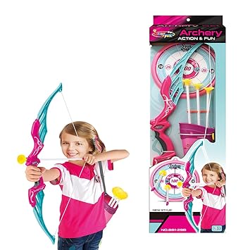 Rolanli Pfeil Und Bogen Kinder Emulational Kunststoff Spielzeug Mit Licht Schiessen Spiel Spielzeug Mit 1 Bogen 3 Pfeile 1 Kocher Und 1 Ziel